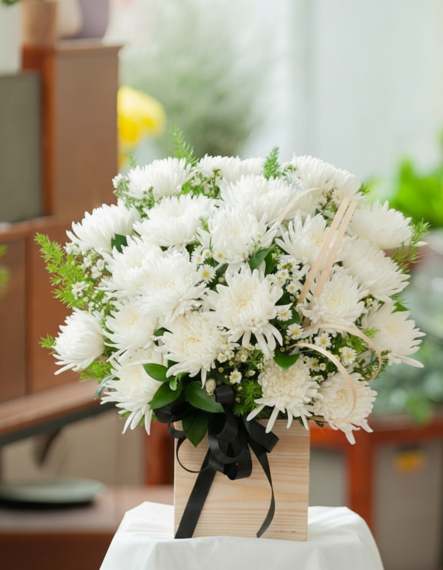 - Hoa tươi viếng mộ, hoa bó, hoa giỏ trang trọng