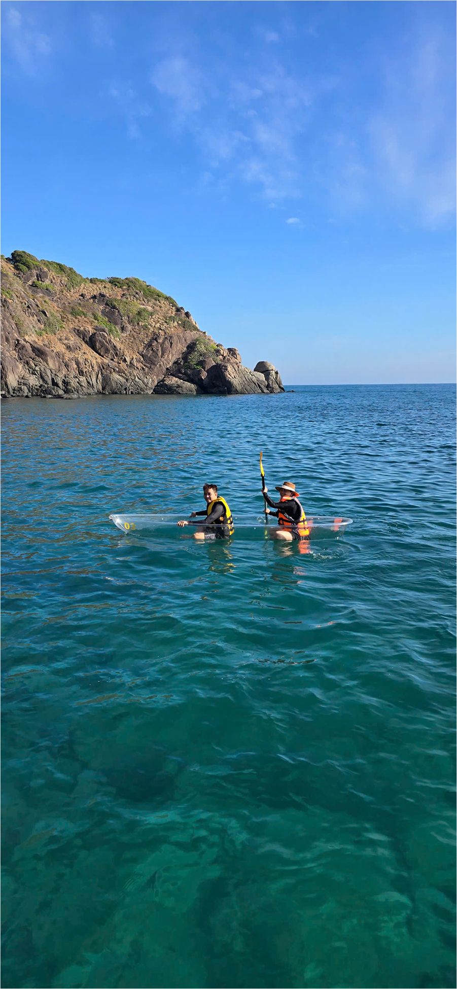 - Cano di chuyển đến Hòn Cau, tắm nắng, tham quan, bơi lặn xem san hô.