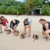 - Đến Hòn Bảy Cạnh: đi bộ xuyên rừng ngập mặn, tham quan Trạm Kiểm Lâm, tìm hiểu hồ ấp trứng rùa biển, vòng đời rùa và loài cua khổng lồ đặc hữu.