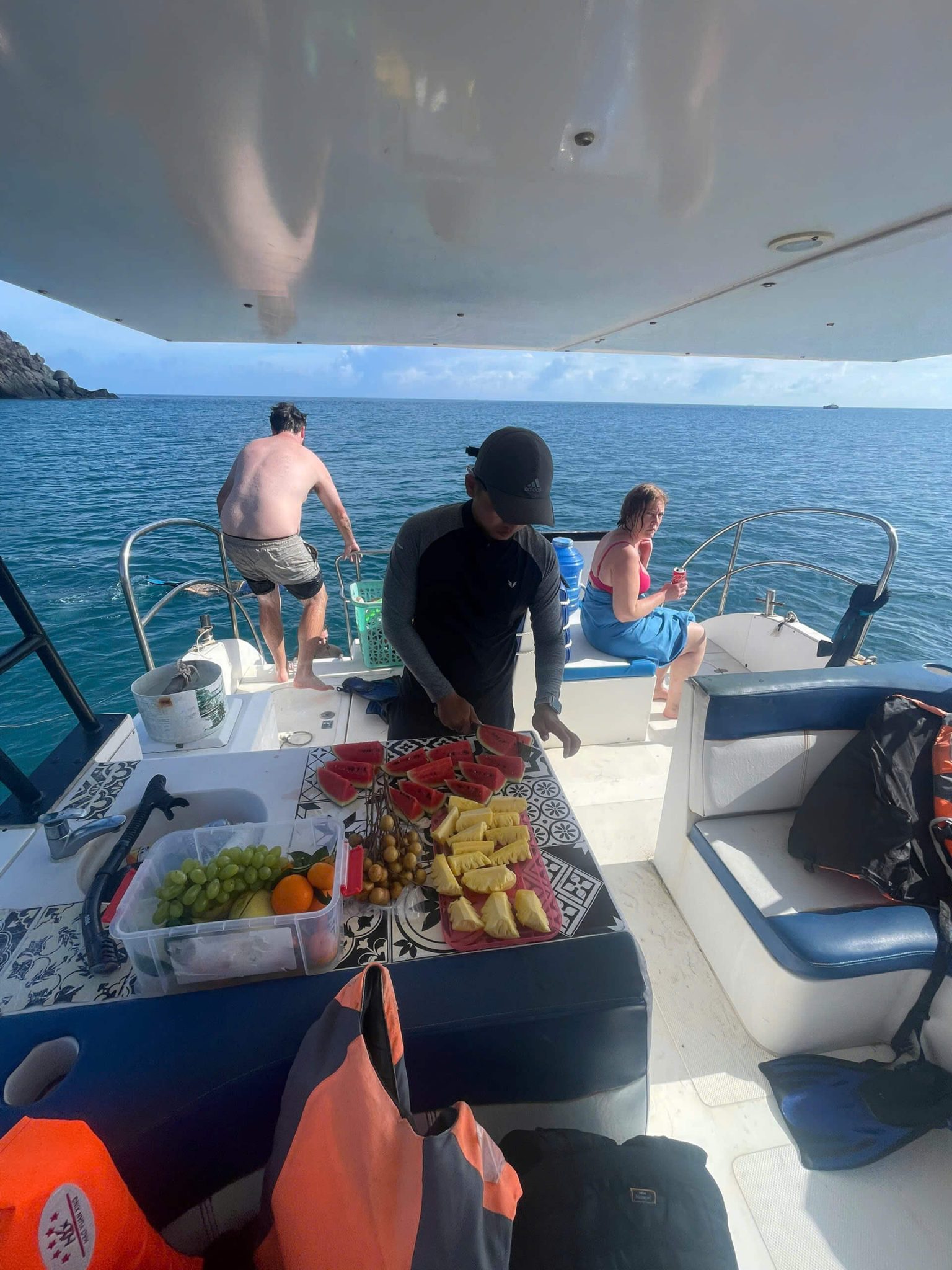 – Thưởng thức trái cây và nước mát ngay trong vịnh.